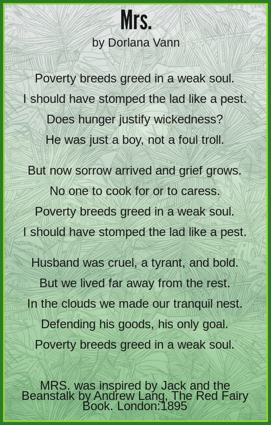 “Mrs.” Poem inspired by Jack and the Beanstalk