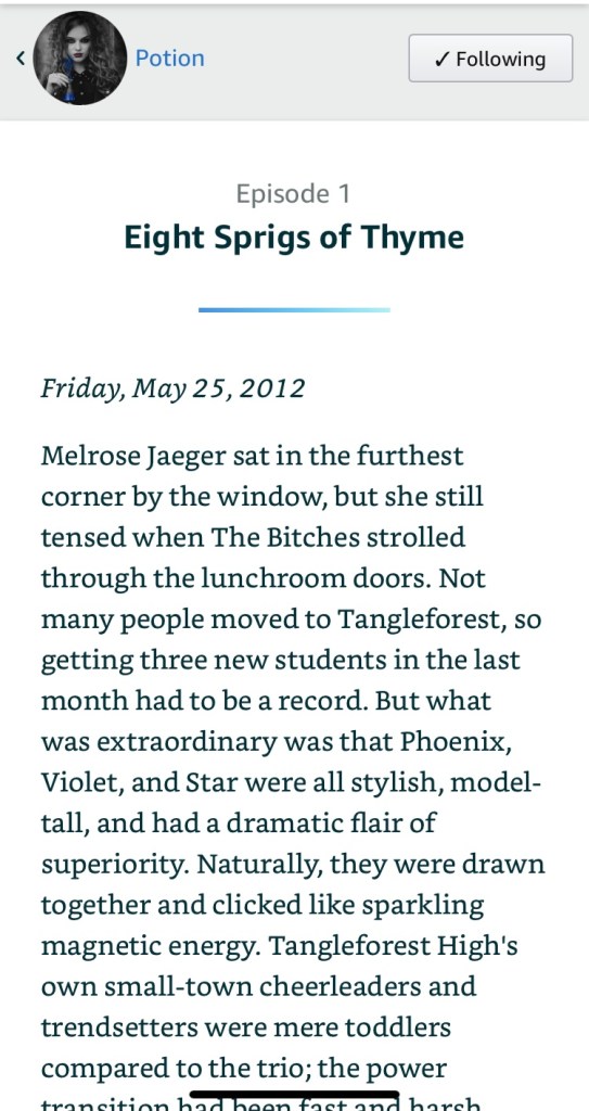 Below is a snippet of episode 1: Eight Sprigs of Time. Each episode has something to do with the title (potion ingredient). So it was a fun challenge choosing the best fit for each episode. Hopefully, as you read the story, you’ll be able to see the relationship.