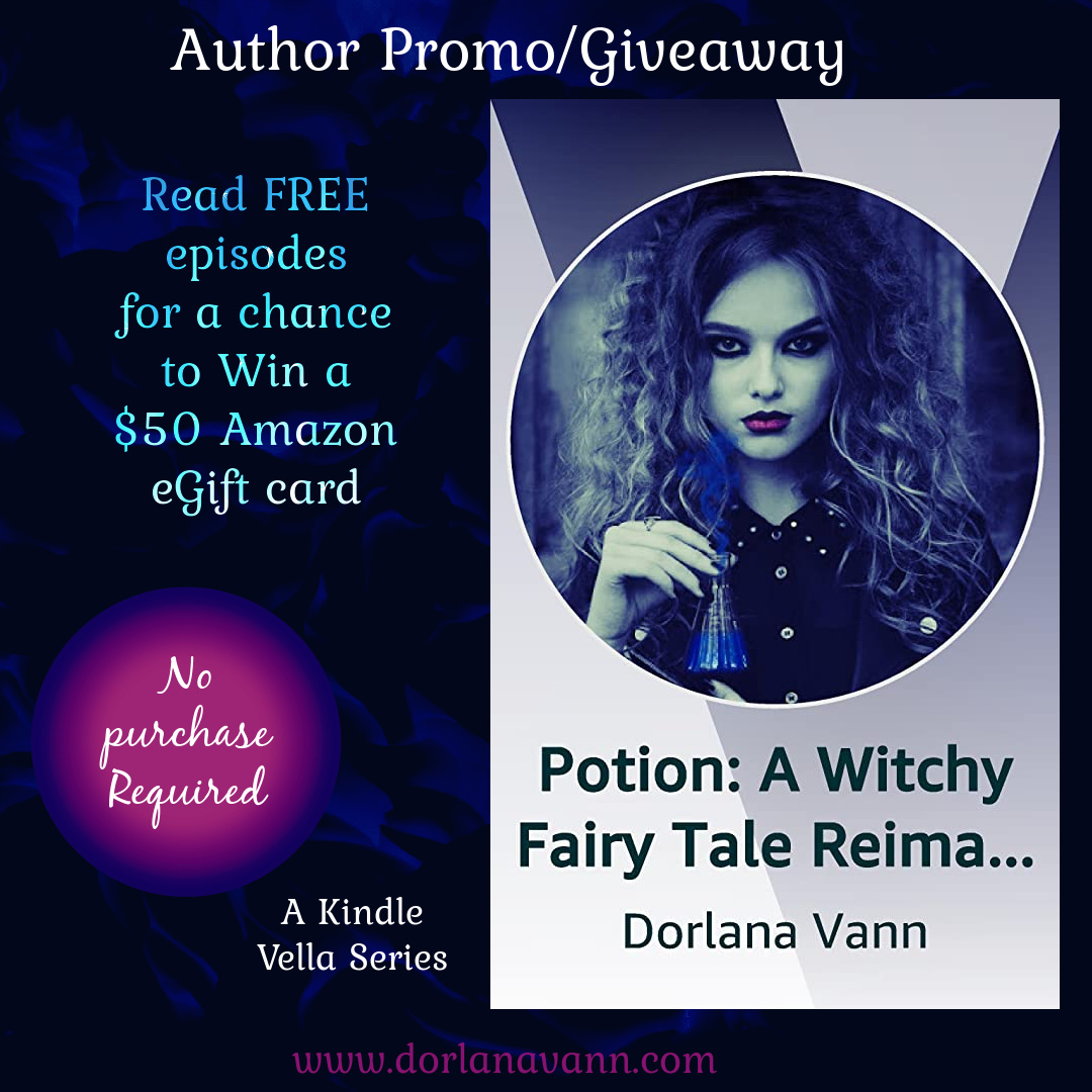 Author Promo Giveaway – No Purchase Required – Free Giveaway highlighting the Kindle Vella Series, Potion: a witchy fairy tale reimagined. No purchase necessary to play; episodes 1-3 are FREE TO READ.